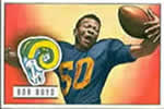 collect this set as a whole, there's something about the Rams logos that sets off the player's image. Bowman used the same Rams logo treatment for their 1952
